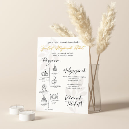 Az ár 2 körös grafikai módosítást tartalmaz a terven (hibák javítása, kisebb változtatások). Amennyiben más meghívóval szeretnétek kombinálni, nagyobb változtatást szeretnétek rajta rendelés előtt egyeztessünk emailben!